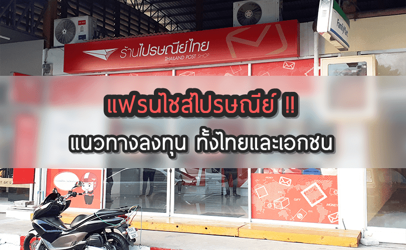 แฟรนไชส์ไปรษณีย์ รายละเอียดและแนวทางการลงทุน ทั้งแฟรนไชส์ไปรษณีย์ไทย และไปรษณีย์เอกชน ธุรกิจเดี๋ยวนี้ ใครที่ทำแล้วประสบความสำเร็จ มักมีการแบ่งปันด้วยระบบแฟรนไชส์ คนขายก็ได้ประโยชน์จากค่าธรรมเนียม และอุปกรณ์ คนซื้อก็ได้ชุดอุปกรณ์ วัตถุดิบ การเรียนรู้การจัดการสำเร็จรูป เพื่อที่จะได้เป็นเจ้าของธุรกิจอย่างรวดเร็ว