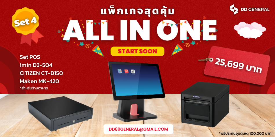 - iMin D4-503 เครื่อง All-in-One POS Touch Screen สำหรับธุรกิจขายสินค้าหน้าร้าน คิดเงิน ออกบิล เช็คสต๊อกสินค้า ดูประวัติการขาย ดูรายงานยอดขายต่างๆ มาพร้อมราคาที่คุ้มค่า พร้อมติดตั้งโปรแกรมขายหน้าร้าน POSPOS ตัวระบบมีฟังก์ชั่นสนับสนุนการทำงานของร้านสำหรับงานขายหน้าร้านที่ครบครัน ช่วยให้ร้านมีการทำงานที่คล่องตัว ช่วยเพิ่มยอดขายให้กับร้านค้า นอกจากนี้เรายังมีการให้บริการหลังการขายอย่างดี การันตีความพึงพอใจ เพื่อให้ลูกค้าได้รับประสบการณ์การใช้งานที่ดีที่สุดเครื่องพิมพ์ใบเสร็จในตัว 80 มม.(Built-in) พิมพ์ความร้อนไม่ต้องใช้หมึก ตัดกระดาษอัตโนมัติเครื่อง POS Android จอสัมผัส 15.6 นิ้ว รองรับ Wifi / LAN / Bluetooth
